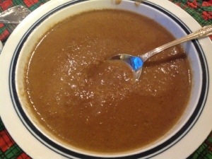 I have a homely one-quart slow cooker. No frills, just a plug. I bought it two jobs ago in the hopes of making lunch at work. My colleagues did not think this was a good idea. It sat in the basement for the last five six years because it runs on US current. I have a fancy one too. It has a chip-based timer and multiple heat settings. I can never use that one here in Europe because even a power converter won’t fix the frequency. So that one is still in the basement. But I digress. As I mentioned before I am trying to eat breakfast more regularly, and without eggs on my menu (at the moment anyway), I have been stumped for ideas. I like soup, so that’s what I have been making.